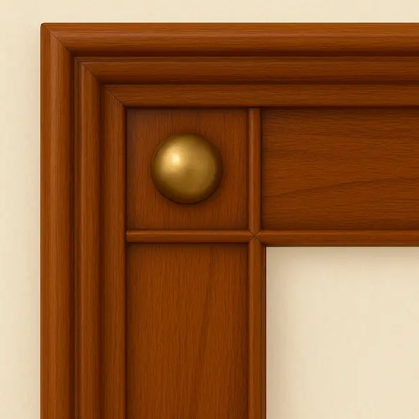 • Corner Detail: Four brass medallion insets