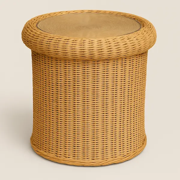 A sophisticated blend of coastal charm and refined craftsmanship, the Newport Wicker Side Table is designed for those who appreciate both style and function. Inspired by luxury seaside retreats, this handwoven wicker table features an intricately braided rim and a tempered glass top, allowing the natural beauty of the woven structure to shine through while providing a durable and practical surface.