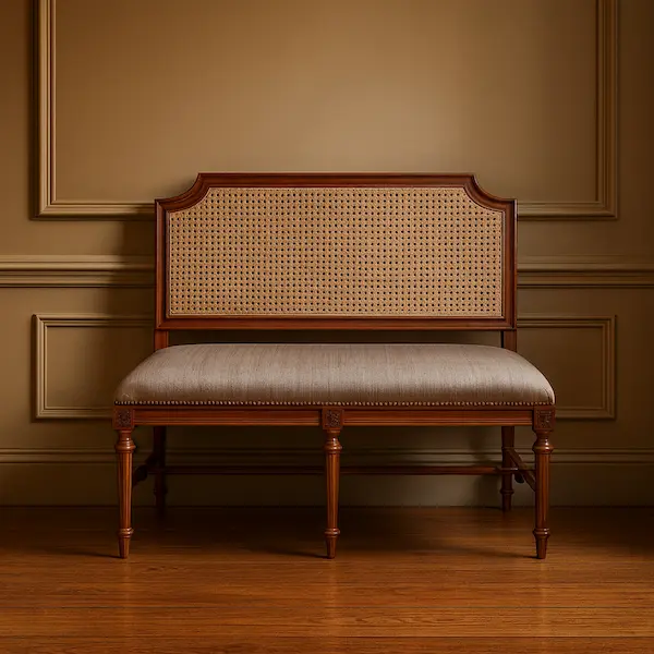 The Versailles Cane Settee brings European elegance into entryways, salons, and boutique interiors alike. Place it in a grand foyer to anchor its presence, pair it with a Persian rug for a sophisticated sitting room, or style it beneath a gilt mirror to create a collected, heritage-driven interior. Its versatility allows it to balance old-world charm with modern ease, ensuring it becomes both a conversation piece